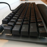 Jak wspomniałem na początku tekstu, model do recenzji wyposażono w przełączniki Cherry MX Speed (srebrne). Dają one specyficzne wrażenie korzystania z klawiatury będącej połączeniem laptopowej, ale o długim skoku klawisza. Podkreślam – skoku, nie drodze do aktywacji. Ta jest niesamowicie krótka – ta, według specyfikacji podanej przez Cherry wynosi zaledwie 1,2 mm. Przełączniki są liniowe i nie wydają praktycznie żadnych dźwięków, jedyne co słyszymy to stukot uderzania nakładek o obudowę. Jeśli nauczycie się na nich pisać, korzystając z ich błyskawicznej aktywacji, klawiatury praktycznie w ogóle nie będzie słychać. Wersja Speed nie wymaga też prawie żadnej siły – aktywacja następuje niemalże po dotknięciu klawisza. Jestem fanem chodzących twardo i głośno przełączników niebieskich, ale na tych też niezwykle przyjemnie mi się pracowało. W przeciwieństwie do czerwonych chodzą bardziej “płytko”, nie było więc wrażenia “zapadania” się palca. Urządzenie wyposażono też w system anti-ghosting, co ciekawe – w dwóch wersjach. Możemy włączyć pełny anti-ghosting, dla całej klawiatury, albo do 6 klawiszy na raz – mogą tego wymagać niektóre starsze programy.