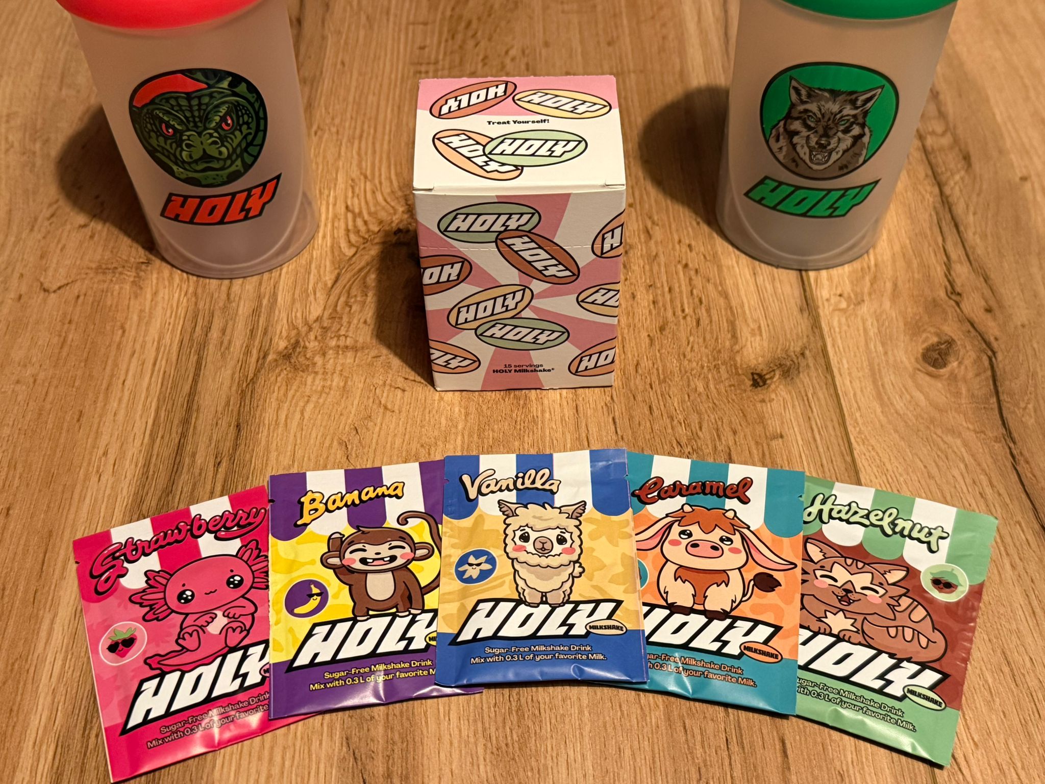 Nie wiesz na co masz ochotę albo który smak wybrać? Nie ma ryzyka, skorzystaj z pakietu startowego i miksuj dowolnie smaki oraz rodzaje napojów. Zestaw startowy oprócz napojów zawiera także oryginalny shaker HOLY, w którym łatwo przygotujesz napój i zabierzesz ze sobą do pracy, na uczelnię, spacer, siłownię lub postawisz na biurku bez ryzyka, że coś się rozleje.