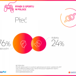Jeśli chodzi o wiek fanów esportu – tu nie ma zaskoczenia. Nie raz różne badania mówiły, że największe ich grono wcale nie leży wśród osób najmłodszych. Jeśli wydawało się wam, że kibicami i fanami esportu są nastolatkowie – potwierdza się, że niekoniecznie musi tak być. 43% to ludzie w wieku od 18 do 24 lat, a druga największa grupa to osoby w wieku od 24 do 34 roku życia – stanowią oni 27%. Cieszy również wzrost zainteresowania esportem wśród kobiet – W 2017 roku odsetek kobiet w esporcie wynosił 24%.