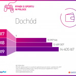 Raport PayPala i SuperData pojawia się rok w rok i za każdym razem pokazuje spore wzrosty wartości esportowego rynku. Tym razem ocenia się ją na 253 miliony dolarów, z czego największe udziały ma Rosja – 38 milionów dolarów. Natomiast na rok 2018 przewiduje się skok do poziomu aż 325 milionów dolarów. Doskonale w tym zestawieniu wypada Polska – nasz rynek wycenia się na około 10 milionów dolarów, dzięki czemu wyprzedzamy takie kraje jak Włochy, Holandia czy Hiszpania. Na rok 2018 przewiduje się wzrost wartości naszego rynku o około 22% – to powinno nam po raz kolejny uciec niektórym krajom Europy, na przykład wspomnianym już Włochom.