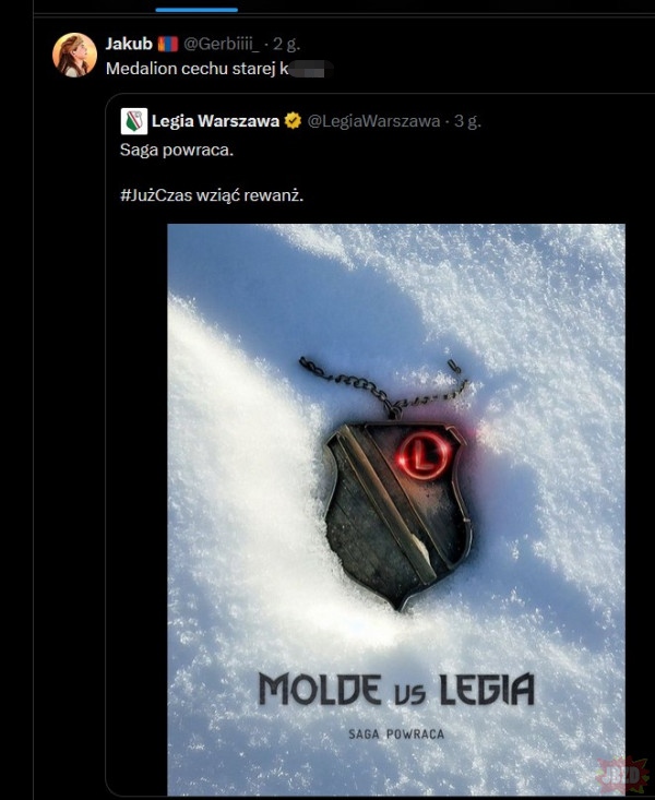 Na oficjalnym profilu klubu Legia Warszawa została zamieszczona grafika przypominająca tę z Wiedźmina 4. Miało to chyba przynieść szczęście przed meczem z Molde.