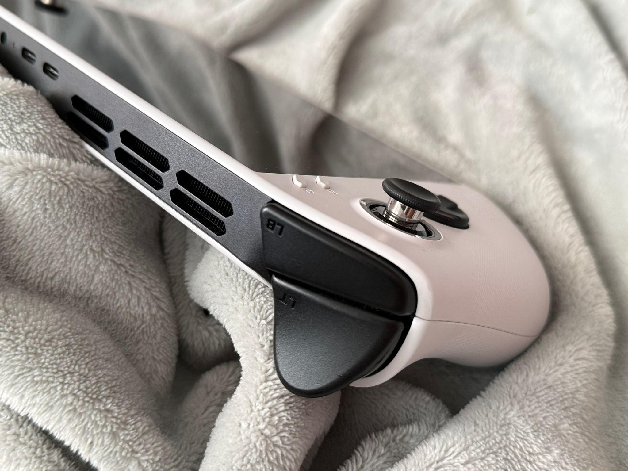 Legion Go S jest wyraźnie mniejszy od pierwowzoru – 8-calowy ekran (WUXGA 1920 x 1200, 120 Hz, 500 nitów) w proporcjach 16:10 powoduje, że urządzenie świetnie leży w dłoniach, jednak masa ok. 740 gramów przy dłuższych sesjach może dawać się we znaki. Obudowa to połączenie matowych i lekko połyskujących plastików oraz przyjemnych w dotyku gripów, które zapewniają dobry chwyt nawet przy spoconych dłoniach. Istotną zmianą względem starszej wersji jest przymocowanie na stałe kontrolerów. Trzeba jednak przyznać, że pady TrueStrike nadal robią świetne wrażenie (RGB, Hall Effect) i mają wyraźny klik oraz regulowane triggery.
