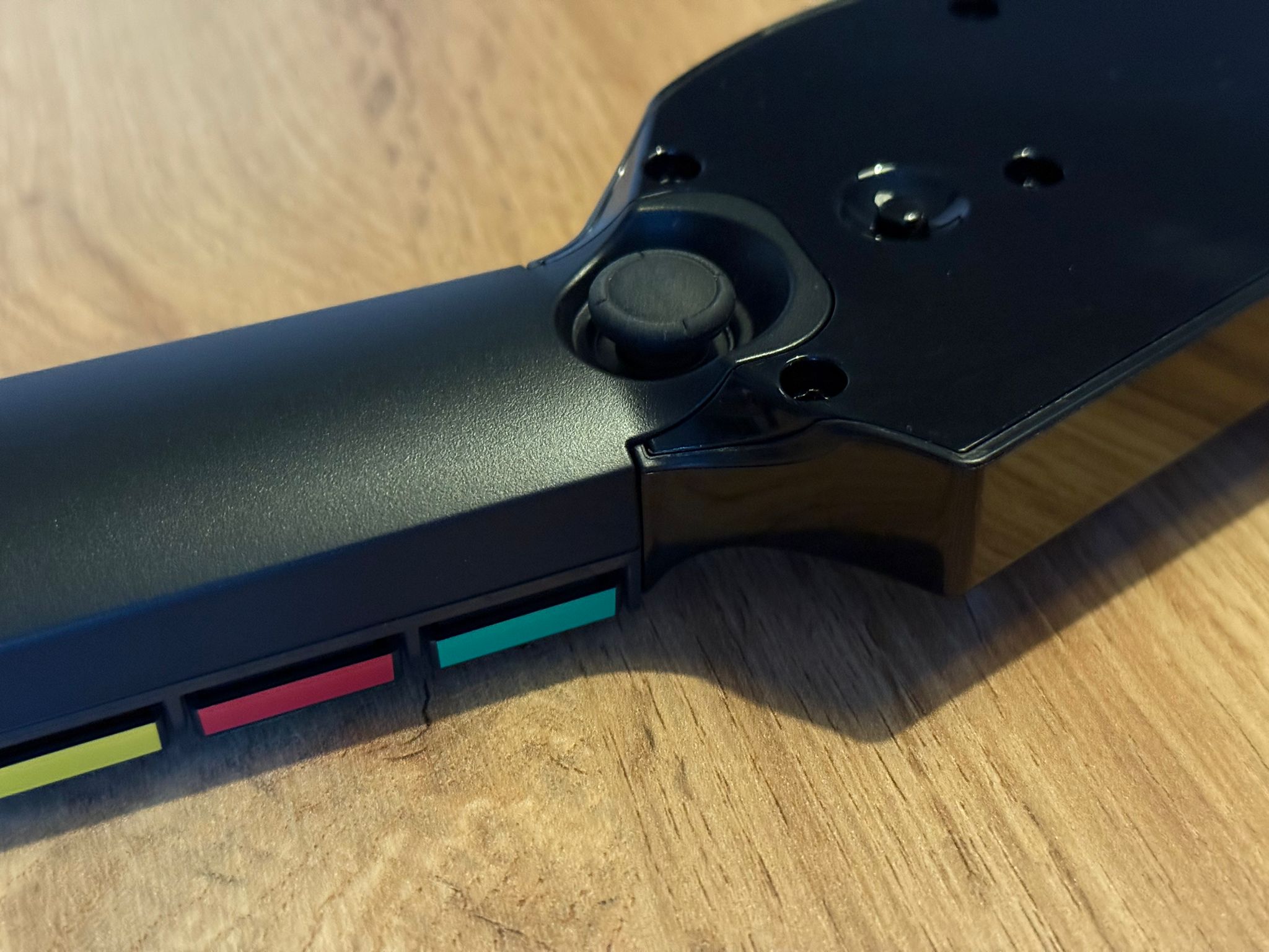 Unikalnym dodatkiem jest mały analogowy joystick na tylnej części gryfu – w teorii pozwala nawigować po menu bez sięgania do D‑pada, ale ten jest jednak zdecydowanie wygodniejszy.