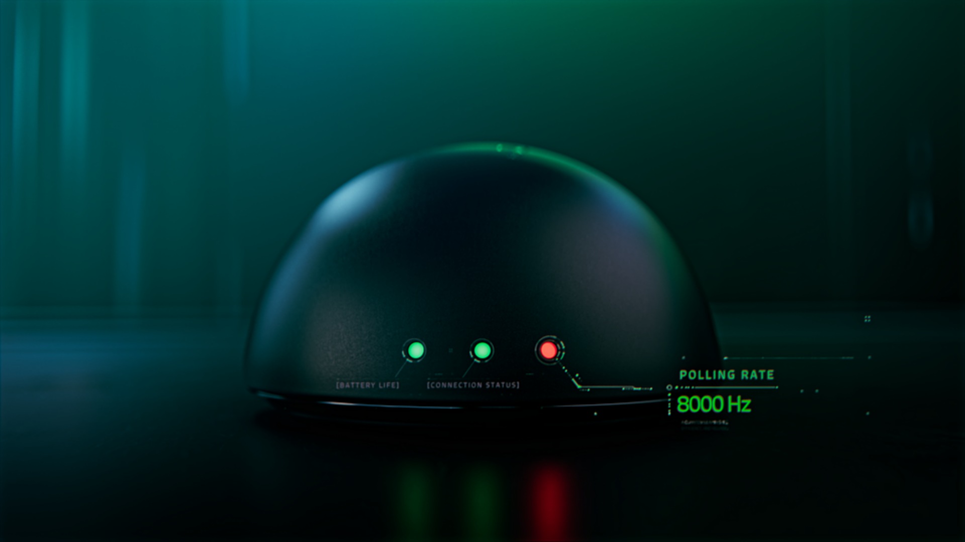Mysz można podłączyć zarówno przewodowo przez USB-C, jak i bezprzewodowo dzięki technologii Razer HyperSpeed Wireless Gen-2. Urządzenie obsługuje polling rate do 8000 Hz w obu trybach, przy czym opóźnienia zostały zmniejszone o 37%, a efektywność energetyczna zwiększona o 63% w porównaniu do poprzedniej generacji. Na jednym ładowaniu bateria wytrzymuje do 150 godzin przy standardowym odświeżaniu 1000 Hz, natomiast przy maksymalnych 8000 Hz czas ten skraca się do około 22 godzin.