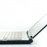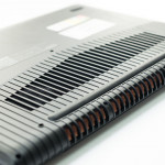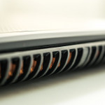 Kolejny temat rozpraw to łączenie klapy ekranu z podstawą. Z jednej strony cieszy zastosowany zawias, który nie przysłania wylotu powietrza, lecz jego sztywność mogłaby być odrobinę większa. Laptop używany na biurku zachowuje ekran w pozycji stabilnej, natomiast w symulacji podróżniczej (skala przeciążeń zbliżonych do wędrówek PKP) nieco dygocze. Wspominam o tym nie bez przyczyny, bowiem omawiany model świetnie nada się na tego typu wyjazdy. Bez problemu można trzymać mobilkę na kolanach. Oczywiście dół laptopa będzie grzać nogi, ale ich nie opali. Zawdzięczamy to perforowanej części spodu, dzięki której nadmiar ciepła odprowadzany jest szybciej, niż w przypadku zastosowania tylko bocznych wylotów.
