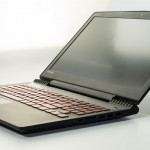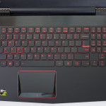 Na miejsce w rubryczce zasługuje także osprzęt. Szczególnie klawiatura, gdyż nasze relacje polegały wyłącznie na zrozumieniu i wspólnej akceptacji. Naprawdę pracowało mi się na niej wybornie. Prawdopodobnie dlatego, że ma przyjemnie niski skok 1,7 mm. Klawisze reagowały szybko i przede wszystkim były dobrze rozmieszczone. Aczkolwiek po otworzeniu klapy niejako zaskoczył mnie widok bloku numerycznego zawieszonego nad strzałkami kierunkowymi. To dość niespotykane wśród laptopów, ale względem wygody bardzo dobrze zaplanowane. Przyciski są mniejsze, niż w standardowym rozmiarze, lecz pozwoliło to zachować kompletny zestaw przycisków i przeznaczyć wolną powierzchnię na rozciągnięcie klawiszy strzałek. Dodatkowo każdy z klawiszy opatrzono delikatną obwódką w kolorze bladej czerwieni (prócz WSAD, który został mocniej zaakcentowany).Ta jednak nabiera soczystej barwy tuż po uruchomieniu podświetlenia. Możemy zdecydować się na dwa poziomy natężenia światła bądź kompletnie zrezygnować z luminacji. Warto jednak postawić w tym przypadku na wspomaganie, ponieważ późnym wieczorem, przy słabym świetle żarówki, czerwone fonty są mało wyraźne.