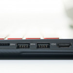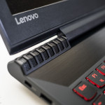 Przeciągając wzrokiem wzdłuż otworów wentylacyjnych zauważymy miedziany radiator, który pomimo plastikowej izolacji zapowiada chłodne wieczory przy grze, ale temat ten rozwiniemy w osobnej części artykułu. Tymczasem skupmy się na bocznych panelach laptopa. Producent zastosował harmonijną liczbę portów z każdej strony, aby w przypadku kilku podłączonych urządzeń nie merdały się ze sobą przewody. I tak po jego lewej stronie ujrzymy gniazdo Ethernet z częściową, ruchomą osłonką, USB 2.0, współdzielone gniazdo dla mikrofonu i słuchawek, a także wejście na zasilanie w niestandardowym, prostokątnym formacie (rzekomo zawodzi mniej od tych okrągłych), blokadę Kensingtona i malutki prztyczek Lenovo OneKey Recovery służący do szybkiego odzyskania systemu lub stworzenia kopii zapasowej. Prawa strona, w moim przekonaniu, jest o wiele ciekawsza i lepiej zagospodarowana. Mamy tu dwa porty USB 3.0, czytnik kart pamięci, HDMI w wersji 1.4 oraz to, co komputerowe tygryski lubią najbardziej – USB typu C m.in. do błyskawicznego ładowania współczesnych urządzeń.