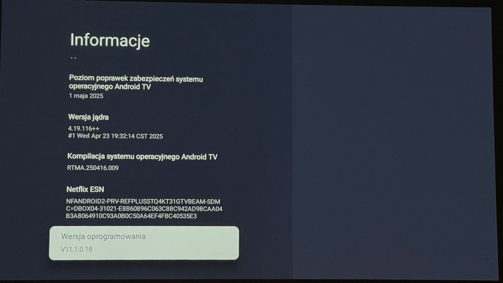 • System: Google TV (pełny, licencjonowany), z Netflixem i resztą głównych aplikacji (Prime, Disney+, Max, YouTube itd.).;