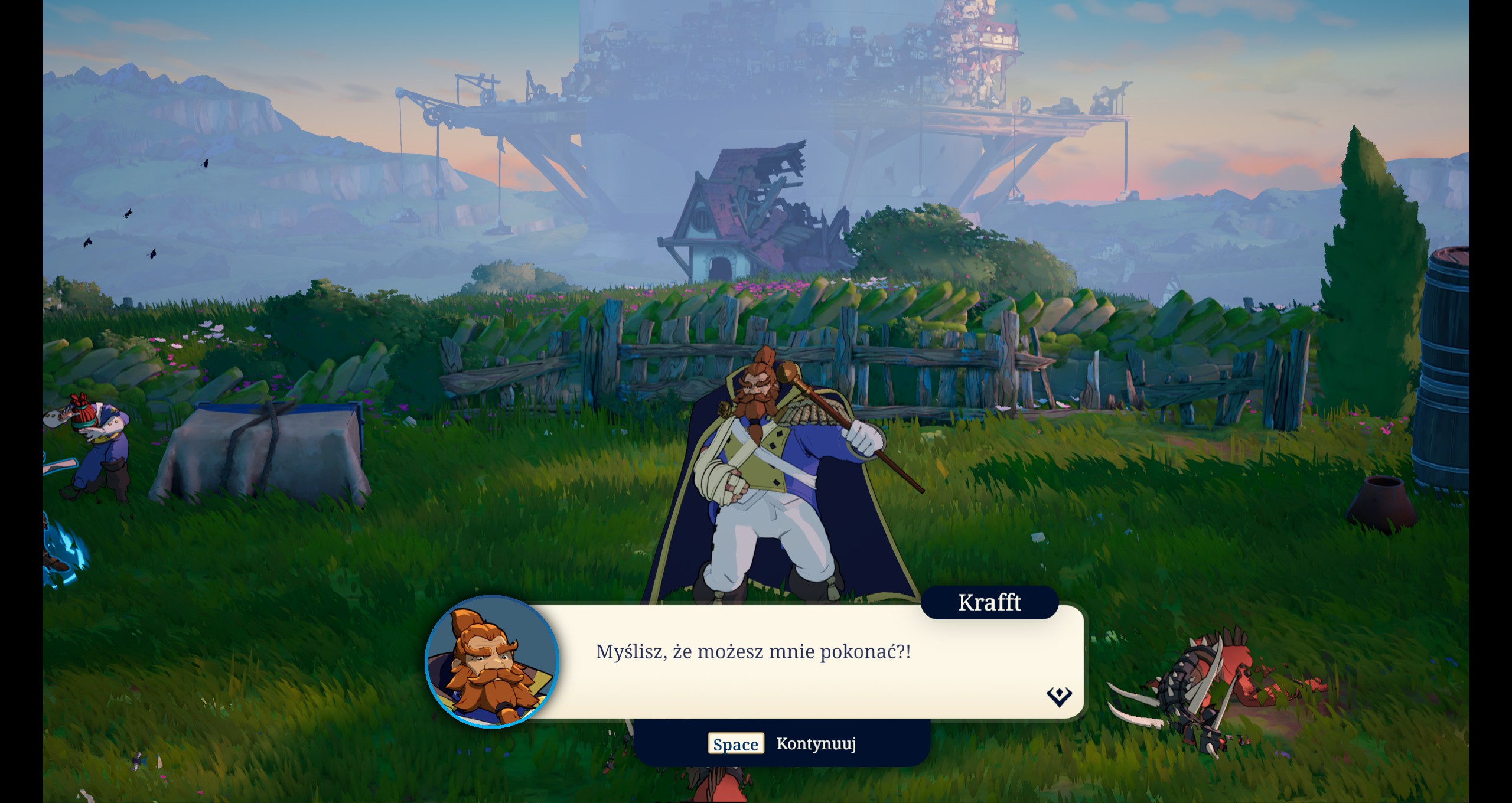 Wizualnie Towerborne powinna wielu osobom przypaść do gustu, choć trudno tu poszukiwać fajerwerków. Stylistyka przypominająca animowany film, bogata paleta barw i ładne projekty przeciwników sprawiają, że każda misja cieszy oko. Muzyka Austina Wintory’ego dopełnia całości, budując atmosferę epickiej przygody, która – choć lżejsza tonem niż poprzednie dzieła studia – wciąż posiada unikalny klimat studia Stoic.