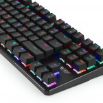 SPC Gear GK530 Tournament Edition to klawiatura TKL, czyli pozbawiona sekcji numerycznej. Dzięki temu ma bardziej kompaktowe wymiary, więc doskonale sprawdzi się na mniejszych biurkach lub turniejach esportowych. Gracze otrzymują do wyboru dwie wersje przełączników – Kailh Brown oraz Kailh Blue. W obu przypadkach mamy do czynienia z indywidualnym podświetleniem RGB dla każdego klawisza. Poza tym miłośnicy MOBA, MMORPG i gier RTS powinni docenić urządzenie za obsługę makr.