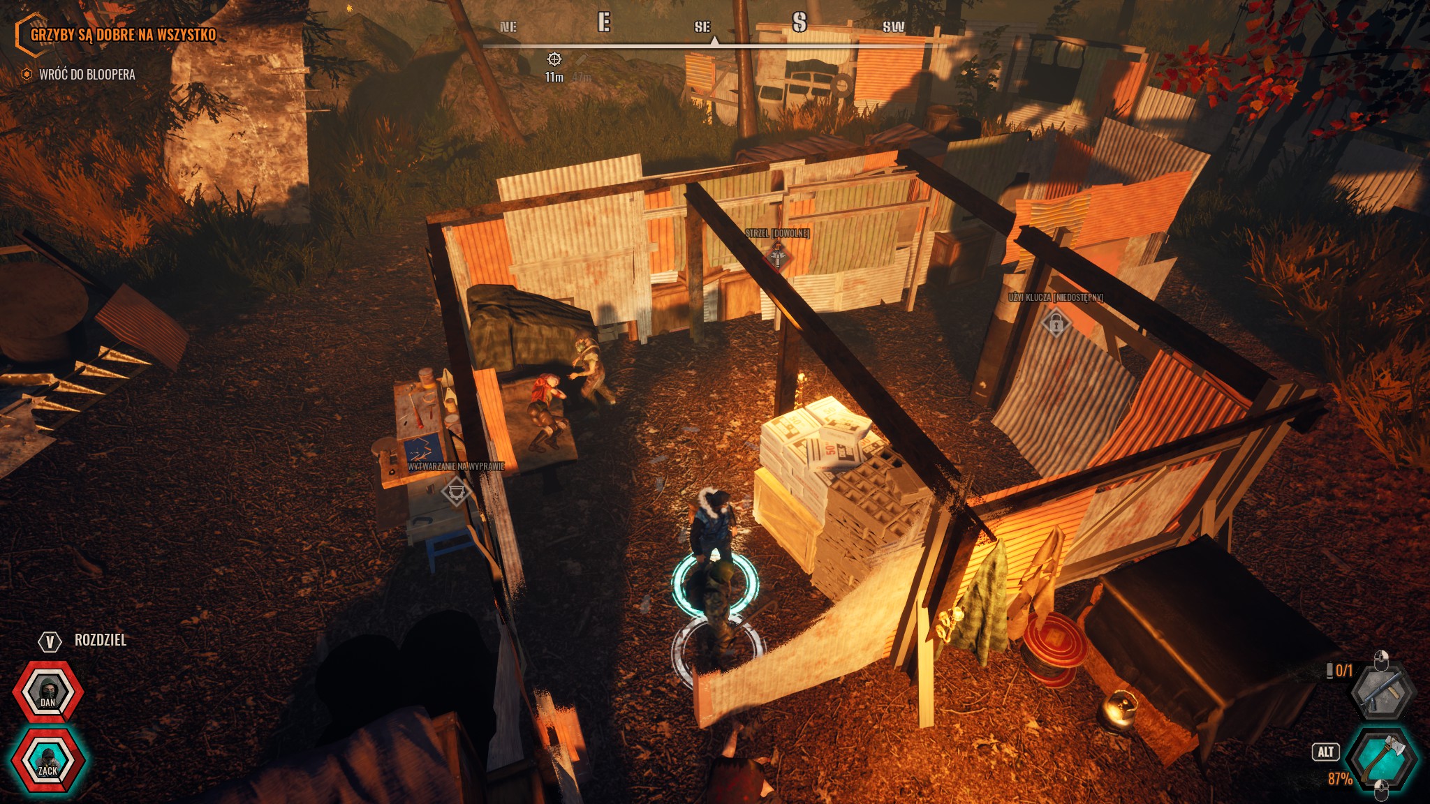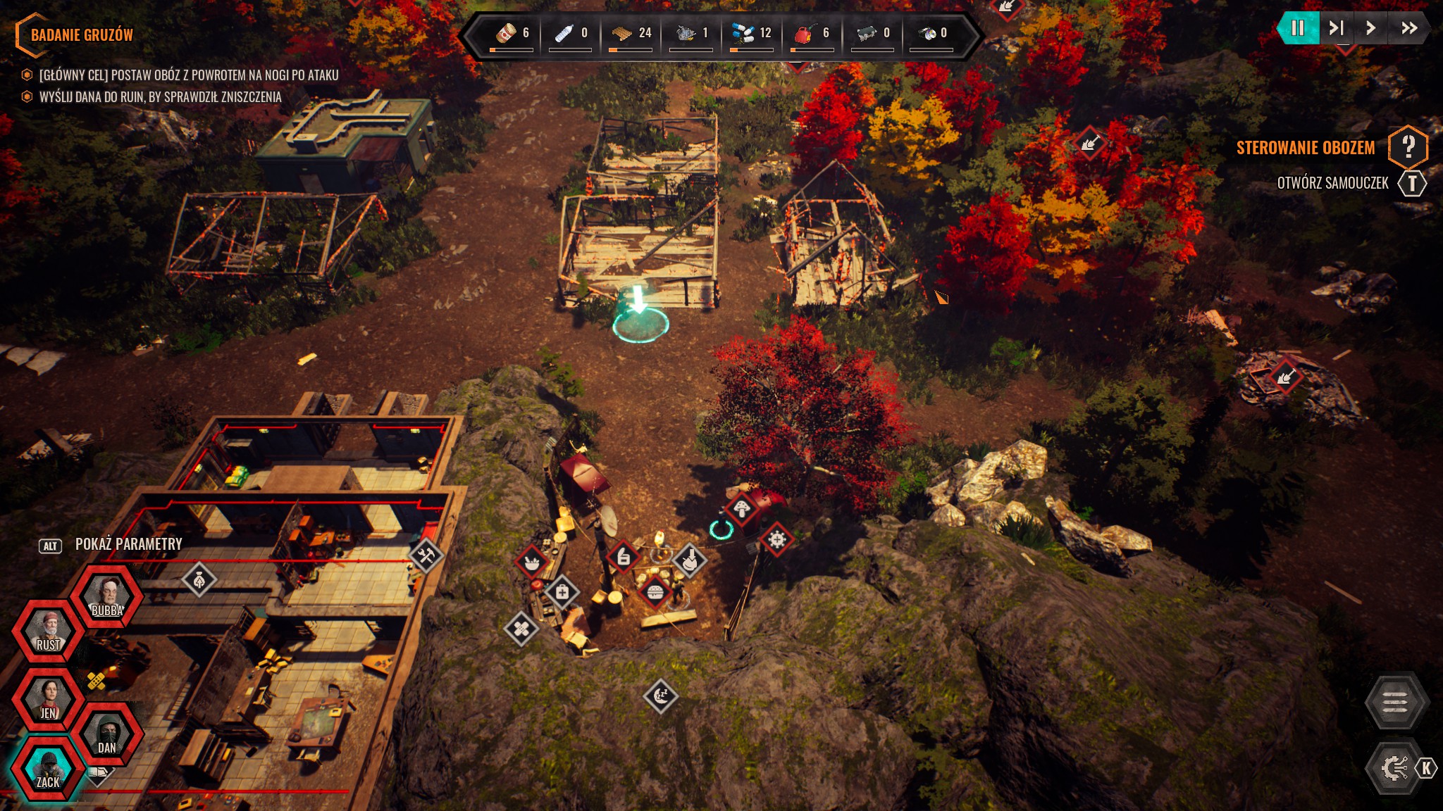 Po powrocie do bazy gra zamienia się w uproszczony city builder – rozbudowujemy osadę, budujemy nowe budynki (kuchnie, farmy, warsztaty, szpitale), dbamy o morale, zdrowie i wyżywienie mieszkańców. Każdy ocalały ma swoje statystyki i specjalizacje, które warto wykorzystywać przy przydzielaniu zadań. System rozwoju bazy jest intuicyjny i satysfakcjonujący, a rozbudowana ścieżka technologiczna zachęca do eksperymentowania.