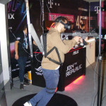 Wzrokowcy mieli na czym zawiesić oko, ale atrakcji nie zabrakło także dla osób pobudzonych do aktywnego grania. W dziale T-Mobile i Asus znaleźliśmy sprzęt rozszerzający wirtualną rzeczywistość. Kto chciał, mógł wskoczyć na bieżnię, chwycić za karabin i poczuć adrenalinę w grze FPS przygotowanej z myślą o VR.