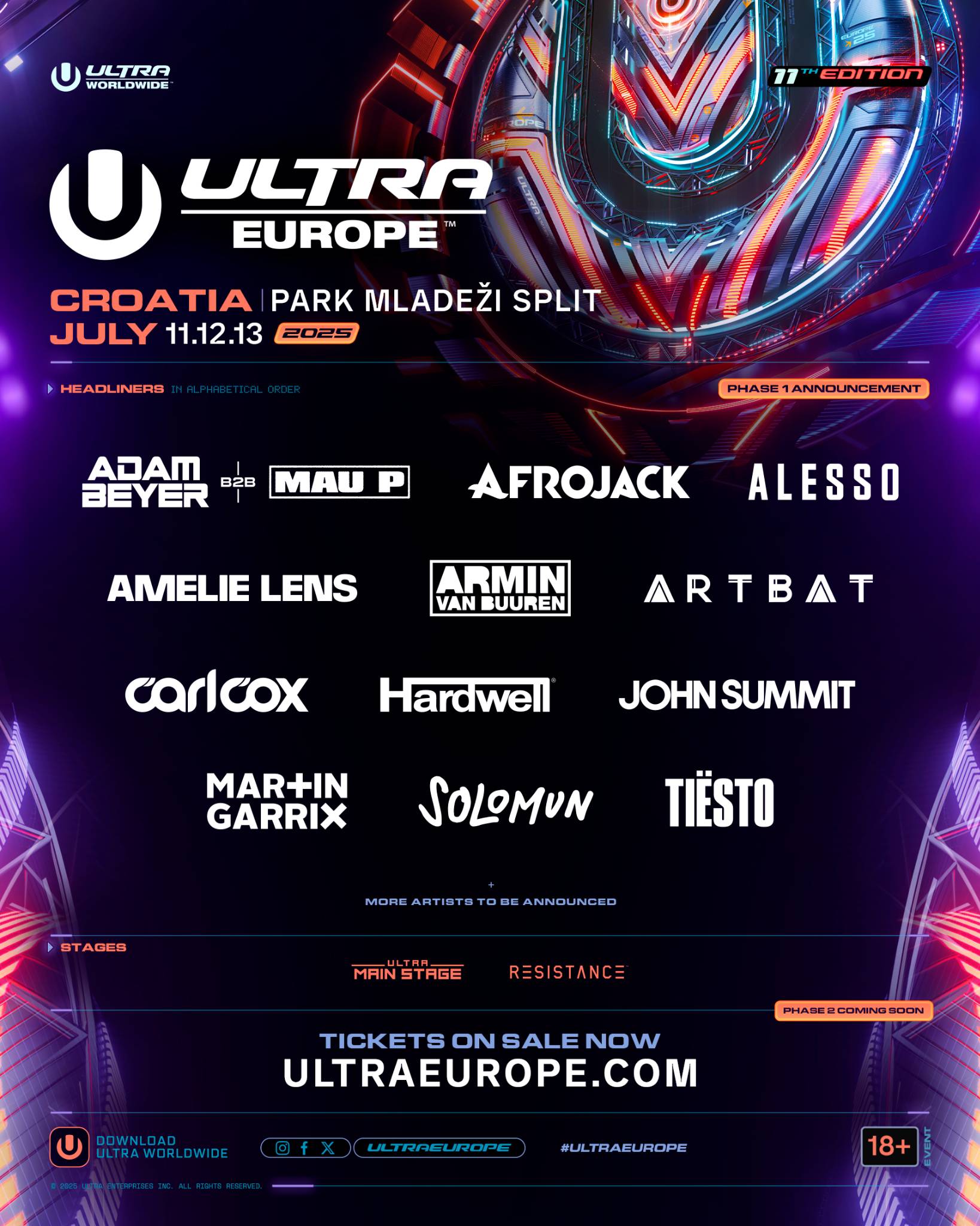 ULTRA Europe właśnie ogłosiło długo oczekiwany lineup Fazy 1 na 11. edycję festiwalu, która odbędzie się w dniach 11-13 lipca 2025 r. w Parku Mladeži w Splicie w Chorwacji. Z ponad 150 000 uczestników z ponad 140 krajów, ULTRA Europe nadal umacnia swój status globalnego fenomenu, jednocząc entuzjastów muzyki z całego świata na niezapomniane święto elektronicznej muzyki tanecznej.