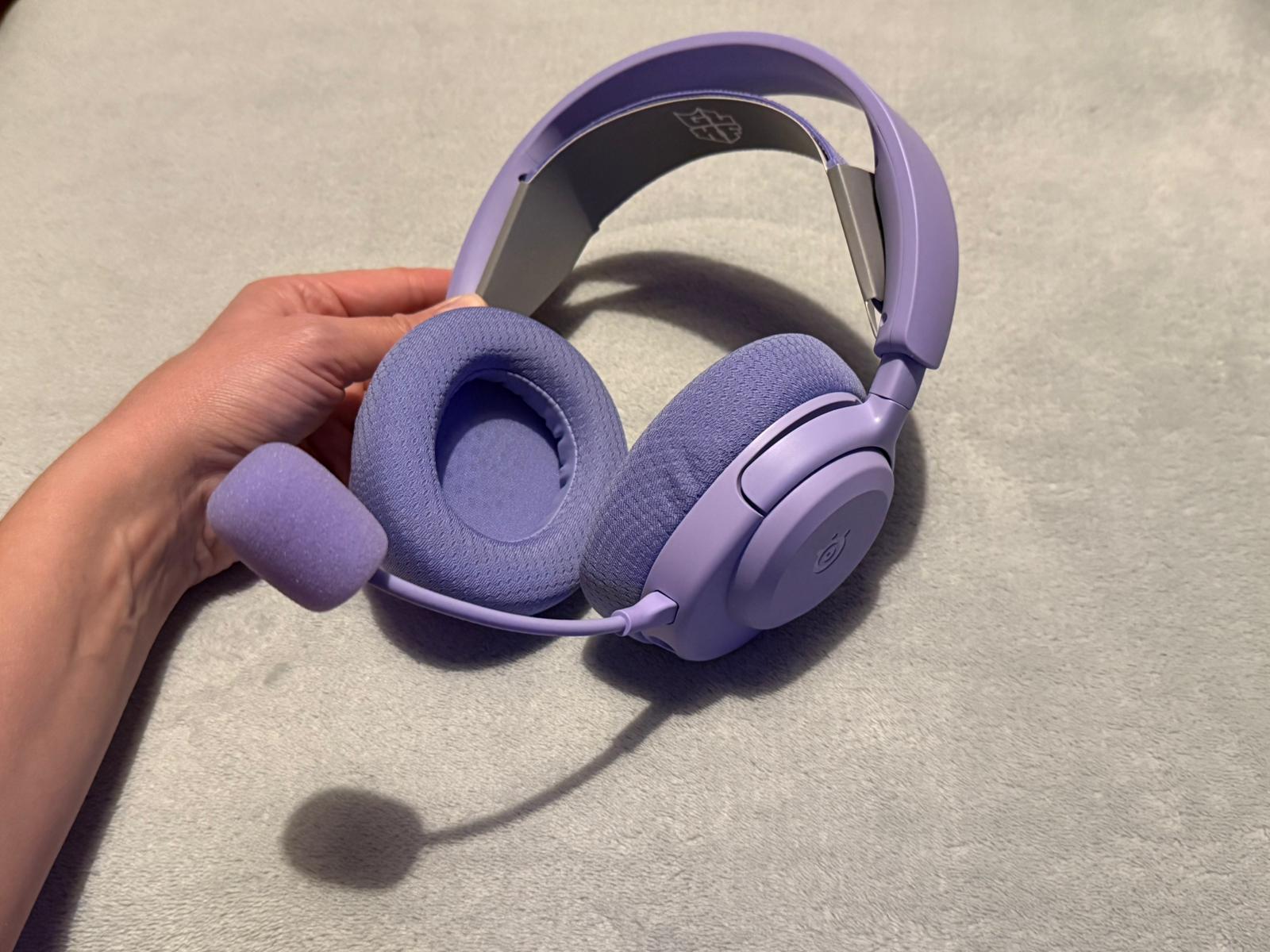 Recenzowany model w wersji Lavender to przykład świetnego minimalizmu – pastelowy, matowy fiolet, zachowany na każdym detalu (nawet pianka mikrofonu!) wyraźnie odróżnia Arctis Nova 3X od innych headsetów dla graczy. Floating headband i miękkie poduszki Airweave zapewniają wygodę nawet podczas wielogodzinnych sesji, a całość jest lekka, solidnie spasowana i nie wykazuje podatności na zarysowania czy trzeszczenie.