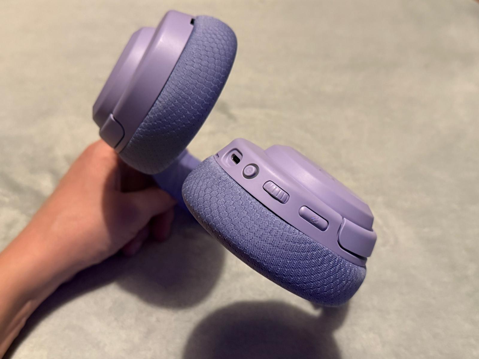 Wszystkie porty i sterowanie umieszczono na lewej muszli. Znajdziemy tu pokrętło regulacji głośności, wyciszenie mikrofonu oraz jeden uniwersalny przycisk odpowiedzialny za włączanie / parowanie / przełączanie trybu. W muszli umieszczono także gniazdo USB-C do ładowania i port do mikrofonu. Przyciski rozmieszczone są w sposób przemyślany chociaż potrzeba chwili żeby nauczyć się wykorzystywać złożone funkcje takie jak sterowanie multimediami przez kombinacje przycisków.